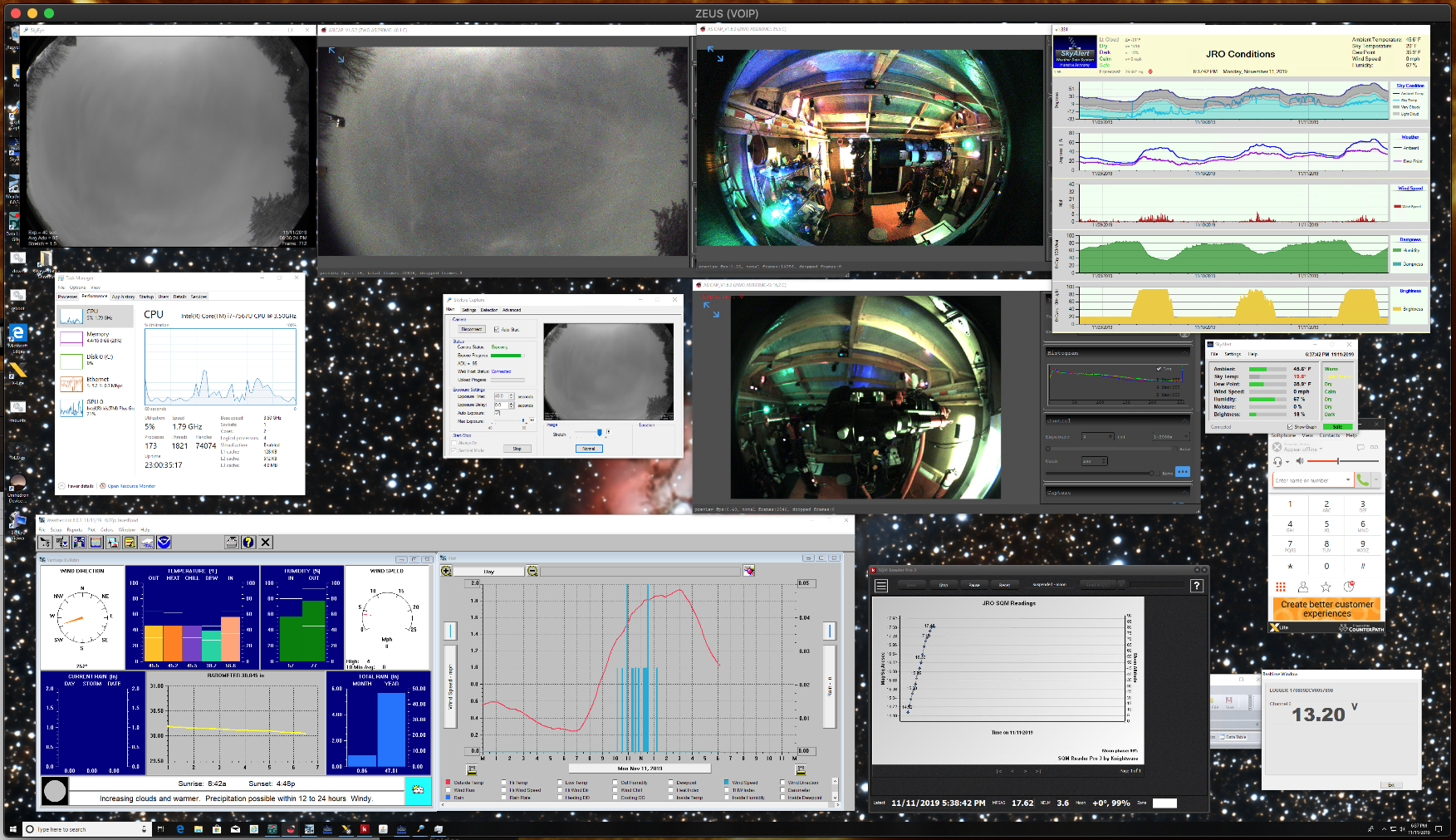 My Celestron AVX that fired from the strike is also on its way back to be assessed. Recently my SkyAlert seems to be constantly out of calibration, so that is on its way back to the manufacturer who made me a great offer to fix it. I'm flying blind without the cloud sensor, going old school for the time being. My DIY Skycam is really nice but always needs manual dialing in to darkness and daytime exposure/gain settings. Using the stock ASICap that came with the camera, I can experiment with other software. I don't really mind but it would be nice if it had presets. #LackingGreatSoftware