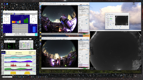 I've worked out most of the bugs in release 6, screen caps of me imaging above. Next step is to get piggyback imaging going. Also shown above (bottom right) is my sensor array containing a Hydreon Rain sensor, DIY SkyCam, SQM meter and Hunter Rain sensor.