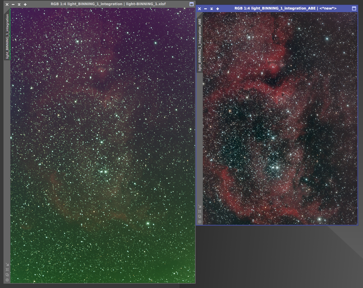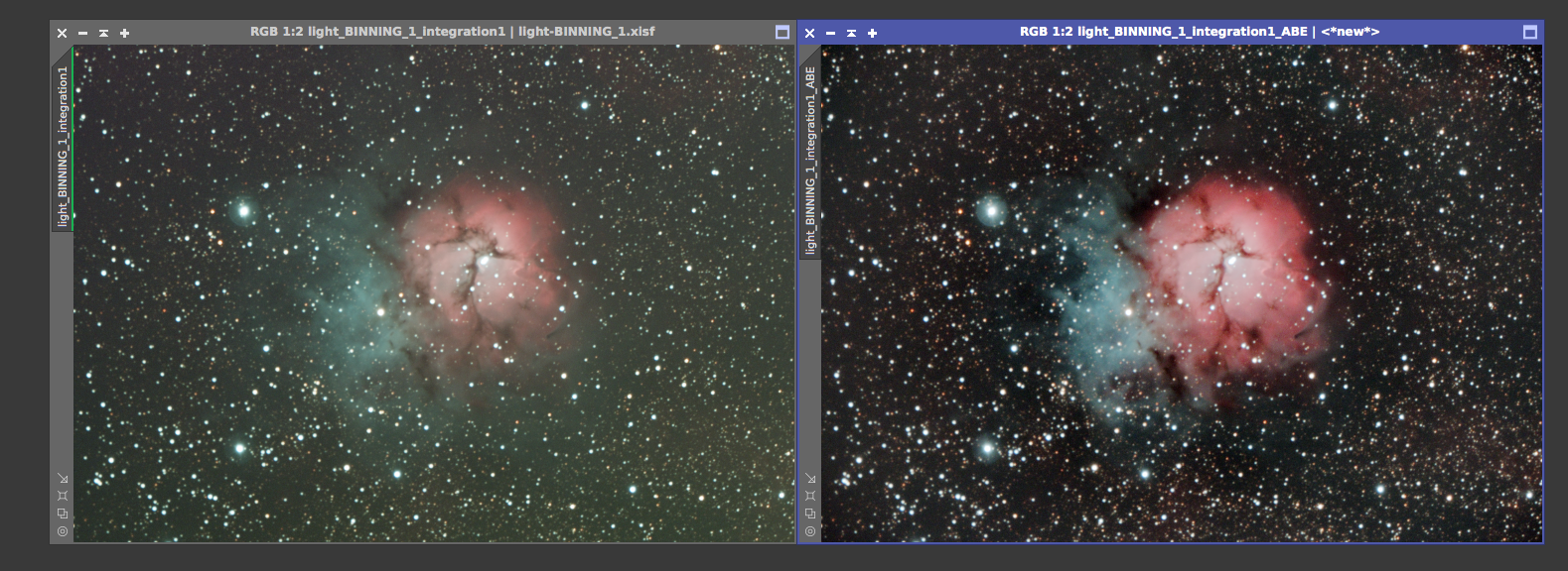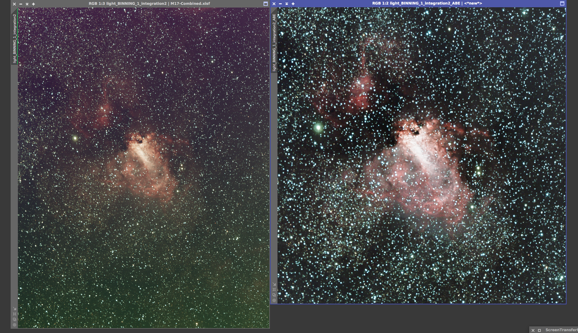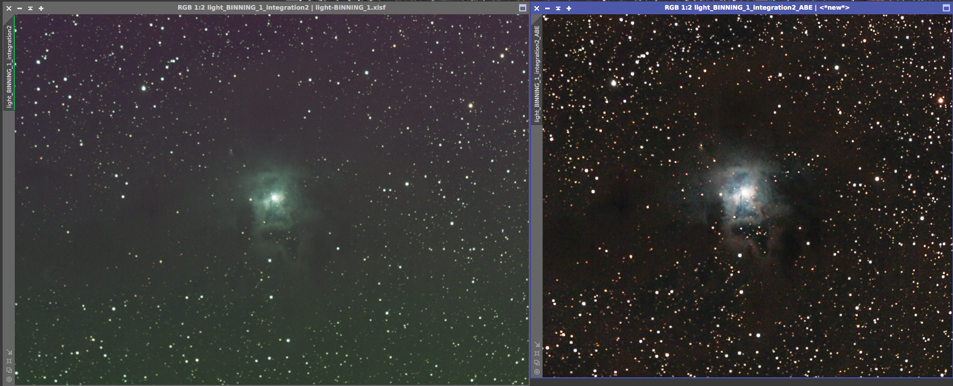 Eagle nebula On the left is the 8x5min OSC subs calibrated and combined with a screen stretch to see the faint nebulosity. On the right is the cropped and processed version from June 20, 2017