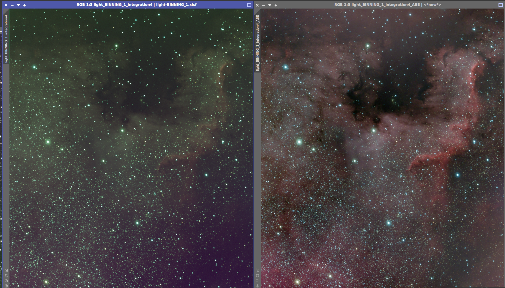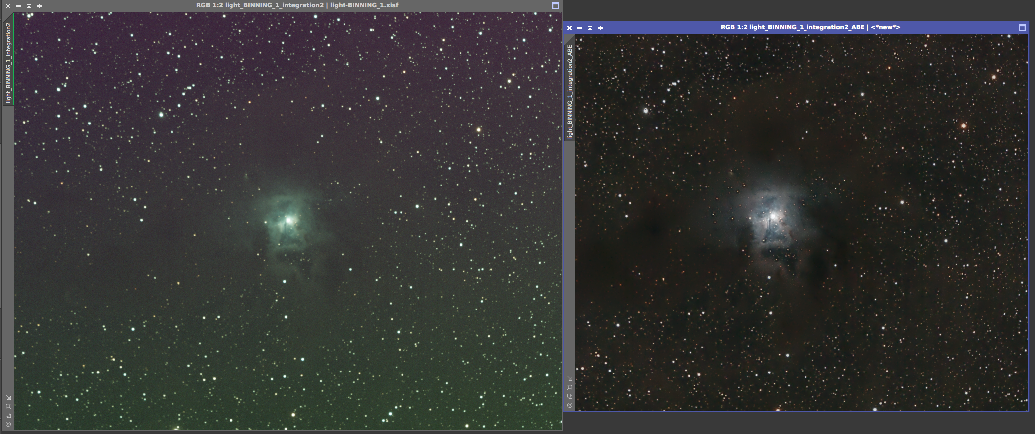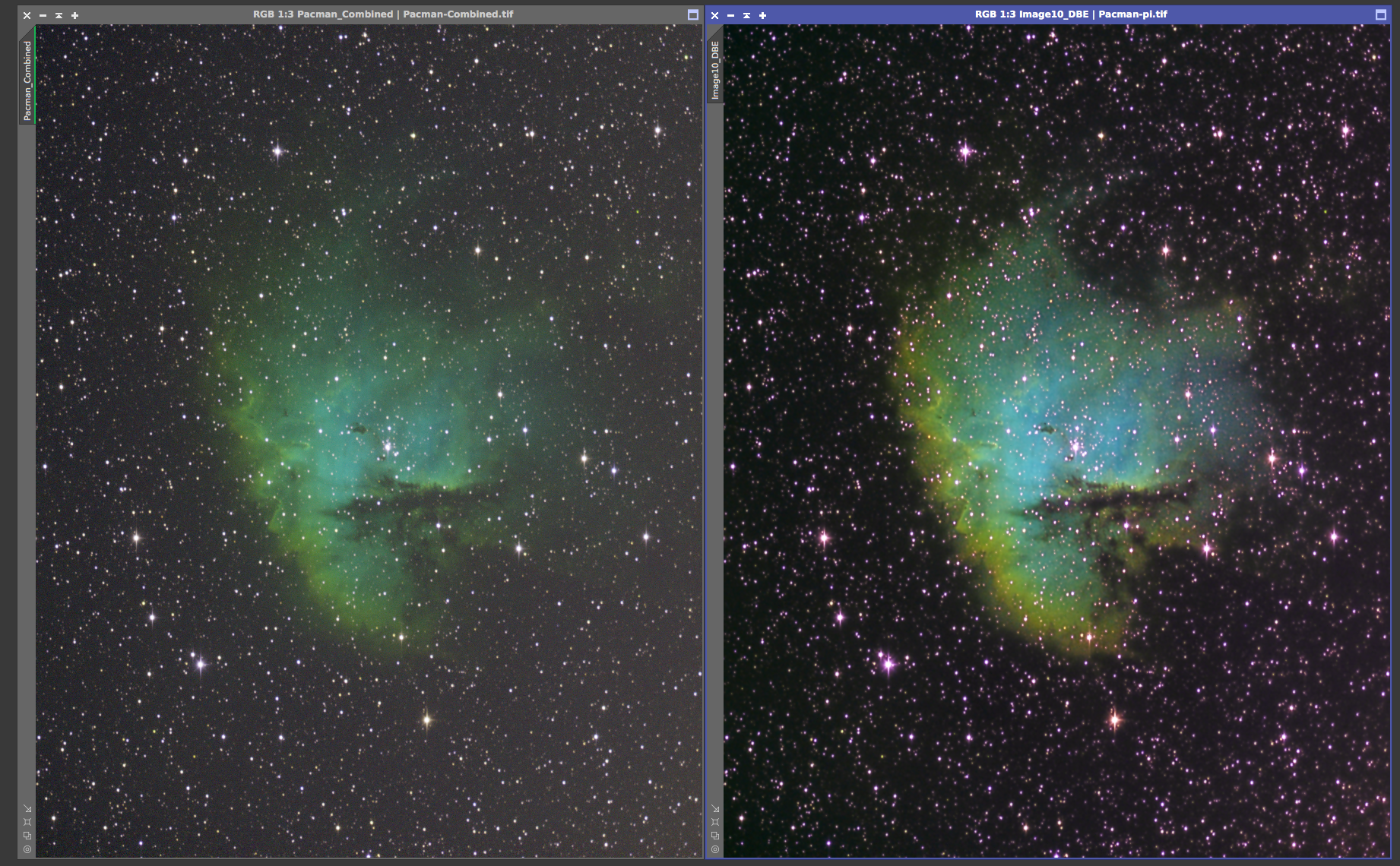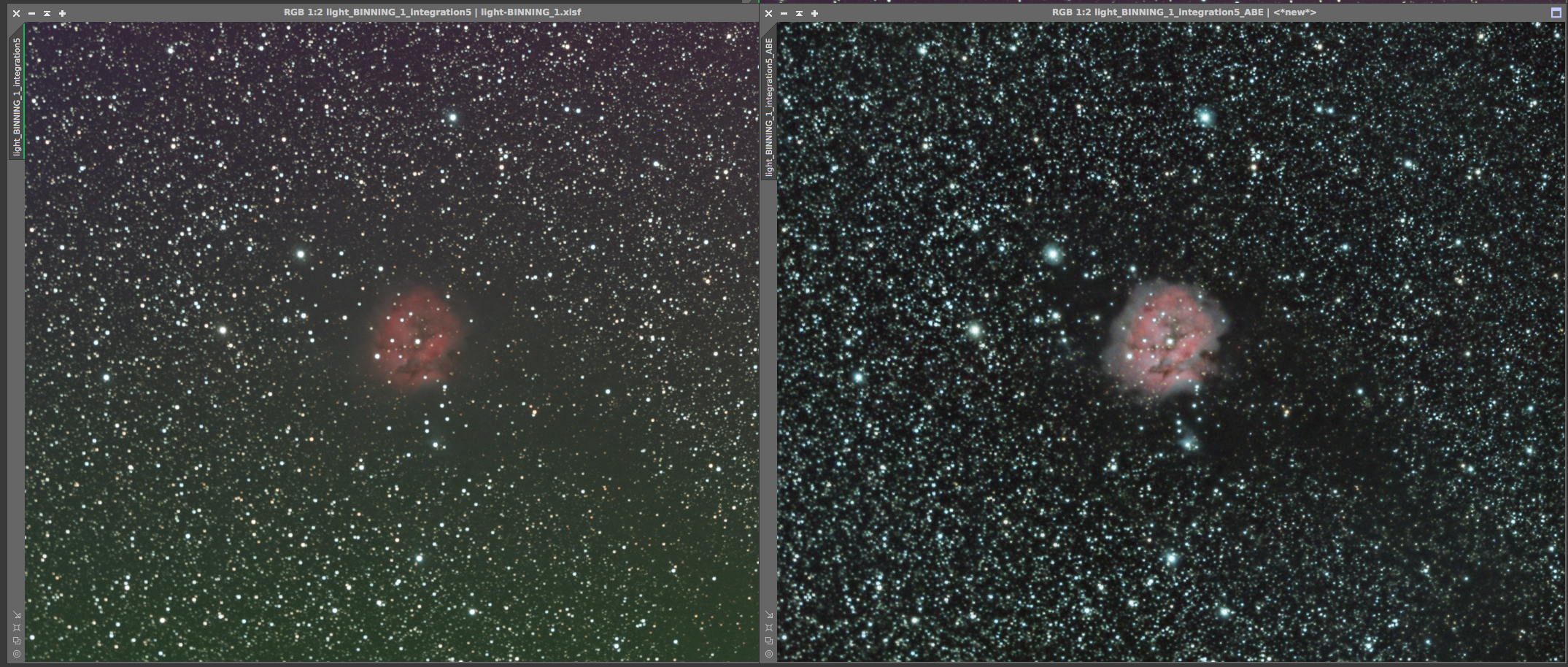 Eagle nebula On the left is the 8x5min OSC subs calibrated and combined with a screen stretch to see the faint nebulosity. On the right is the cropped and processed version from June 20, 2017