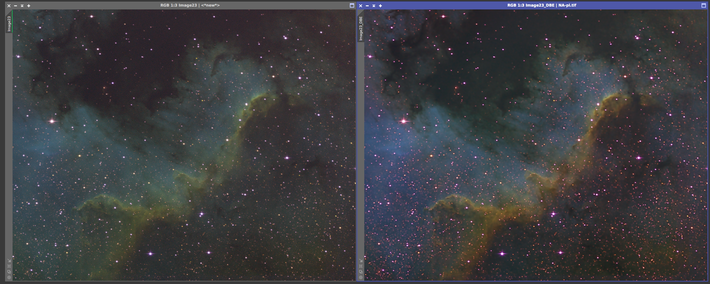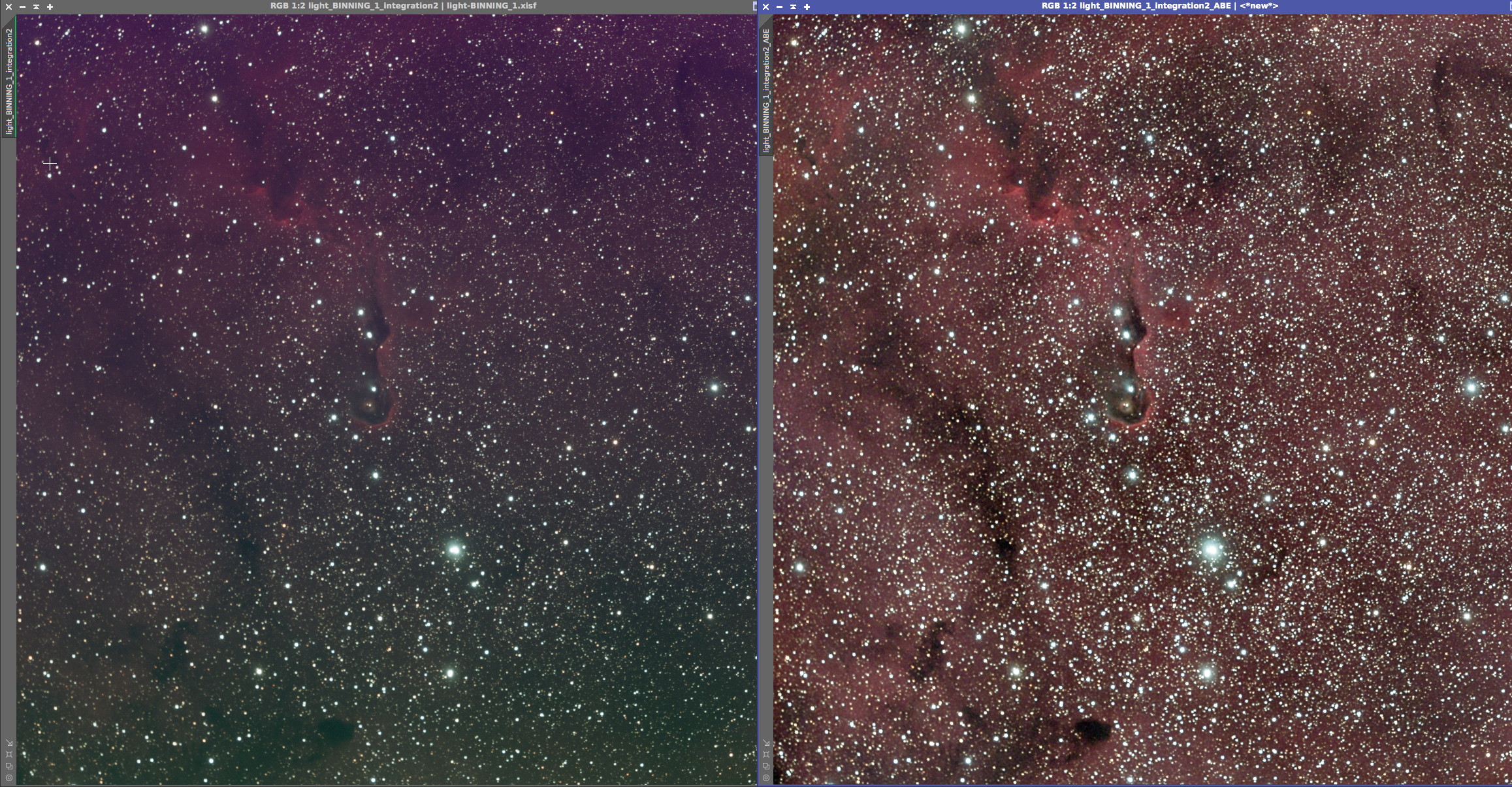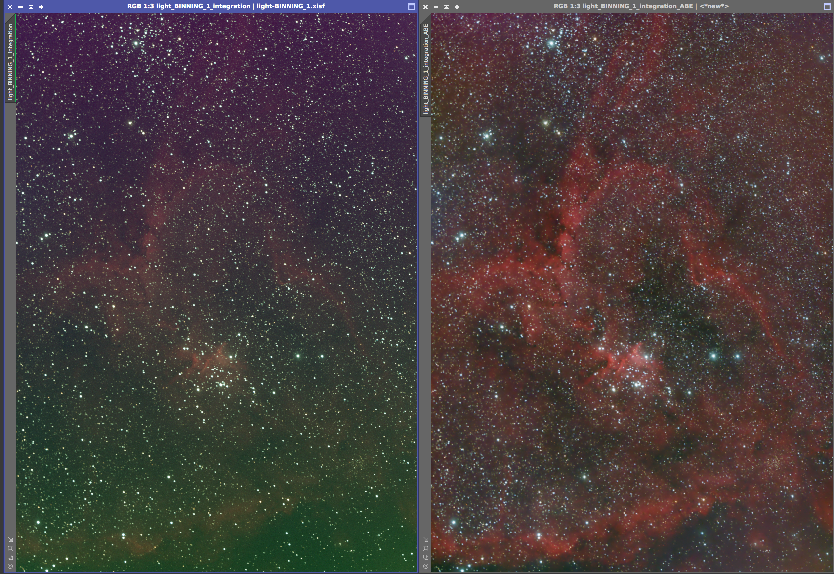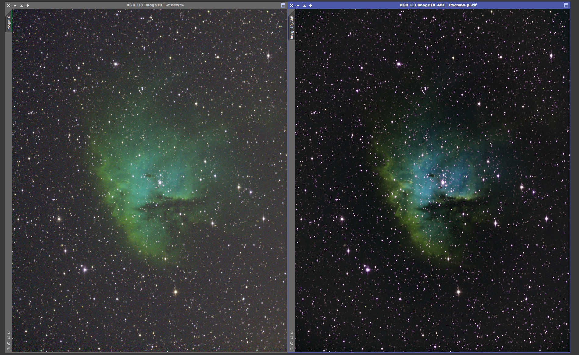 Eagle nebula On the left is the 8x5min OSC subs calibrated and combined with a screen stretch to see the faint nebulosity. On the right is the cropped and processed version from June 20, 2017
